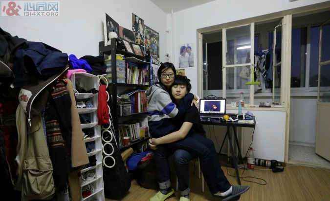 北京的一对女同性恋人,宁宁(左)和诺诺,在他们的公寓里。(Jason Lee/路透社)