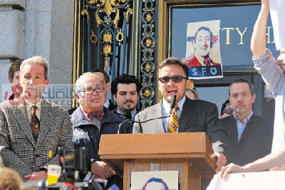 坎波斯(前)要将旧金山机场以米尔克命名,同性恋组织集会支持。