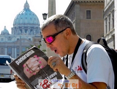 7月23日在意大利罗马,一位读者正阅读新上市的刊登了三名神父同性恋活动报道的《全景》杂志。