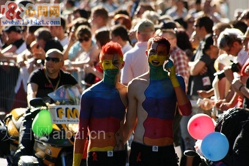 德国南部斯图加特市的第十届同性恋者年度游行于8月1日举行,虽然该市的这一游行没有柏林等地的规模大,但在狂欢般人潮的带动下也颇为热闹。今年斯图加特同性恋者游行的主题口号是“勇气的力量”,成千上万人在约20万人的沿途观看下走过当地主要街道。 如同其它许多地方的同性恋者大游行,斯图加特的游行队伍有大彩车、音乐和独特装扮的人群,也有彩虹旗和呼吁同性恋者平等权利的标语横幅,而在整个游行中,最吸引眼球的场面之一是一对全身彩虹妆的男男情侣。 8月3日,美国威斯康辛州承认同性伴侣关系的法律生效,一些同性恋人当天已在各地登记机构申领到伴侣证书。有关法案是在今年6月由州议会投票通过,并由州长签署成为法律。在目前有州宪法禁止承认同性婚姻或同性民事结合关系的美国各州中,威斯康辛成为了第一个法律承认同性同居伴侣关系的州。 在荷兰首都阿姆斯特丹,当地市政府正不断想办法吸引国外游客。从上个月开始,随着阿姆斯特丹市支持同性恋者水上大游行即将举行,当地官方旅游机构面向美国人推出了旅游宣传网站,这一网站打出的主题口号为“阿姆斯特丹每个人都gay”,也介绍了阿姆斯特丹市面向同性恋者的知名旅游、服务和文化场所。虽然“每个人都gay”,但并非每个人都同性恋,网站中也有不少异性恋人的画面,包括首页上一对骑着自行车的异性恋人。 8月1日斯图加特游行中的彩妆情侣: