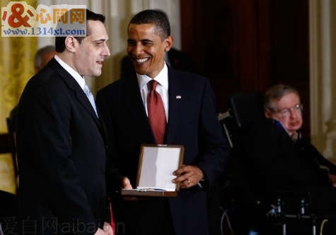 哈维-米尔克的侄子斯图尔特-米尔克从奥巴马手中接过授予哈维-米尔克的总统自由奖章: