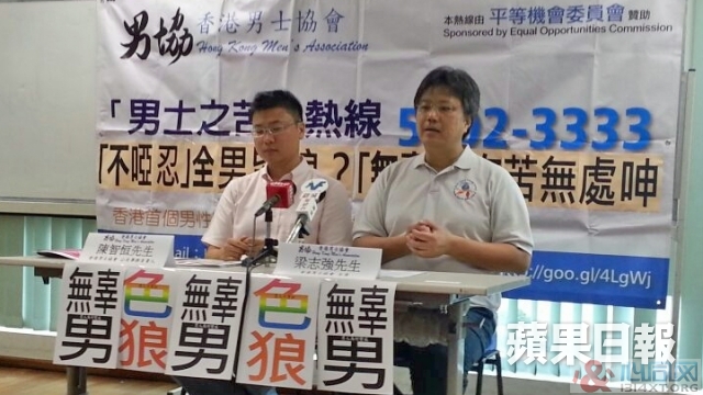 苹果日报9月22日讯 香港男士协会“男士之苦”热线由7月至8月底共收到100人次致电,有近三份一男士表示曾遭质疑为色狼,认为男人被过度渲染成性暴力或性骚扰的唯一加害者,更令部份受屈“无辜男”不敢举报。
