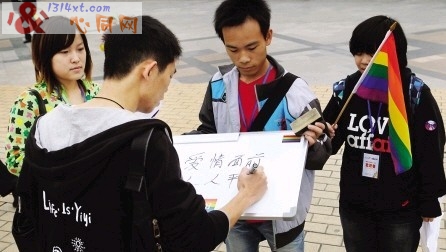 图文出自12月2日《东南快报》第A6版 昨天在五一广场,福建省第一个同性恋组织福桐联合会在进行“同志你好”的微笑征集活动。许多并不是同志的志愿者通过网络聚集在一起,向过往路人介绍“世界艾滋病日”的意义以及同志现状,征集异性恋的笑脸和对同性恋的祝福语。(记者 朱晓洁 陈懿萍 林朝阳 实习生 王雨果 王圣砚 摄影报道)