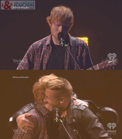 疑似腐味弥漫、基情四射的养眼一幕,发生在网路电台iHeartRadio实体大型演唱会舞台上:美国帅哥饶舌歌手Macklemore光是自己当台柱就迷倒众生,这下他还大搂英国创作才子Ed Sheeran的腰!画面引人遐思之外,两人合唱《Same Love》为同志族群发声,让歌迷大饱耳福,现场台下尖叫想必特别大声啊…