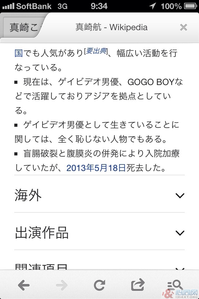 同时日本维基百科更新词条显示真崎航生年月日:1983年7月20日,没年月日:2013年5月18日。