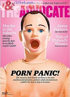 《The Advocate》今年6月的一期封面话题是关于经济萧条对色情行业的影响。这期封面被《时代》杂志评选为年度十大封面的第七位。(《时代》的本年度各类十大>>)