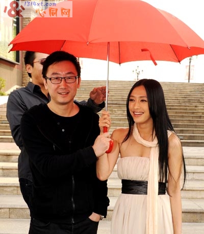 导演陆川和演员秦岚(右)在抗艾滋病公益广告拍摄现场。