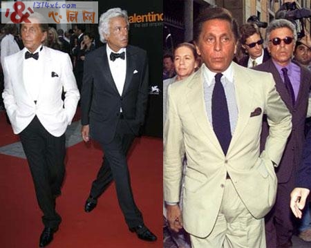 左图:Valentino和Giancarlo Giammetti一身黑白情侣装参加自己品牌在罗马的世纪服装展览。右图:两人相携参加威尼斯电影展