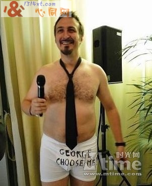 身穿写有“克鲁尼,选我”字样内裤的意大利男记者