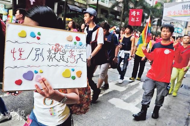 在这些来自中国内地的参加者中,我见到在台湾碰到的那位北京同志妈妈。这次她的神情不再迷惑与彷徨,面上展现出自信光采的笑容。她手上拿着一幅中国同志家长组织的横额,和队友们一起在游行的路上,未几,他们的队伍就消失了。我当下好想走过去跟她说:“有你这位体贴的妈妈,相信你的儿子在北京一定过得很快乐,也有不少的同志朋友。但我也希望邀请你和她下年一同来参加香港的同志游行,在这里你儿子一定会认识到更多不同的朋友,陪伴他走更远更阔的路。”
