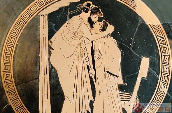 出土于雅典的高脚杯,描绘的爱者与被爱者之间的同性亲吻(公元前5世纪)