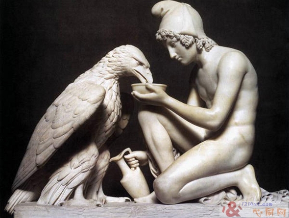 加尼米德(Ganymede)——世上最美丽的人,世间绝色的美少年。众神之王宙斯被他的美貌吸引,化身成一只老鹰将其掳上天界并与之jiao欢。这则希腊神话表现了古希腊人对美少年的迷恋。