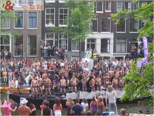 阿姆斯特丹的同性恋游行Amsterdam Pride号称欧洲最盛大,固定在每年八月的第一个周末在阿姆斯特丹市中心举行。阿姆斯特丹同性恋游行不仅仅是同性恋或同性恋的支持者走上街头展示口号,它其实是综合性的文化活动,包括露天派对、街道或运河游行、文化展览、教堂服务、研讨论坛、免费接种疫苗等等,全部活动持续两三天。每年的游行都得到政府和很多公司的支持。届时整个阿姆斯特丹是人山人海,热闹非凡。除了各种主题的派对和街头表演之外,许多酒吧更是人多得没地方呆。在布满运河的阿姆斯特丹,活动最高潮就是围绕阿姆斯特丹市中心城区的运河上举行的游行,每年都有数十多艘船参加,有些男同性恋者打扮成娇艳的兔女郎或复古造型,更有许多劲歌热舞的俊男美女,来自世界各地的同性恋者都精心打扮参加这场盛宴,水上游行持续四、五个小时。