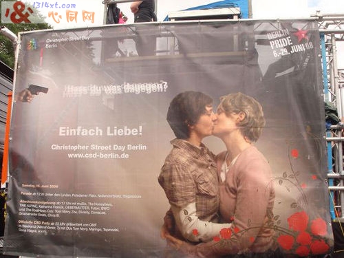 在“男人城”转悠,我发现这里有很多贴着“红色结”标志的房子。经打听方知,这些房子里都是公益组织,比如预防艾滋病组织、帮助青少年协会等。这些组织的责任是宣传健康向上的生活方式及怎样造福社会。此外,“男人城”还发行自己的报纸,放在柏林各书店的门口,免费供人取阅。报纸上刊登的是同性恋者关心的新闻、艾滋病研究进展、健康常识和各类服务信息。